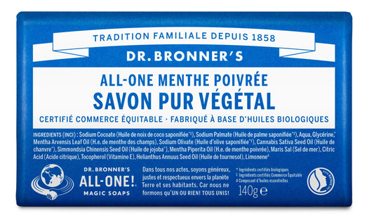 Dr. Bronner's est le savon le plus vendu sur le marché des produits naturels aux États-Unis. Seuls les ingrédients biologiques et équitables les plus purs sont utilisés. Aucun conservateur synthétique, aucun détergent ou agent moussant—aucun!